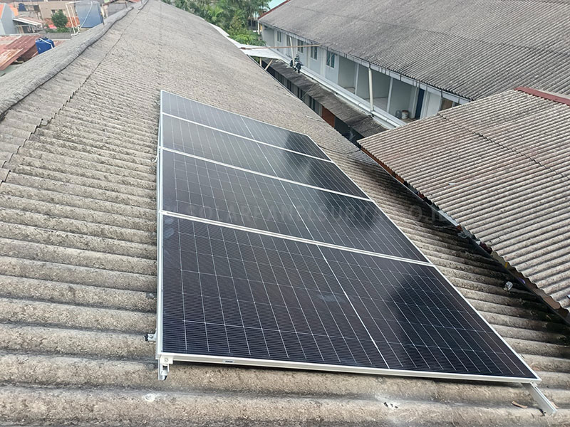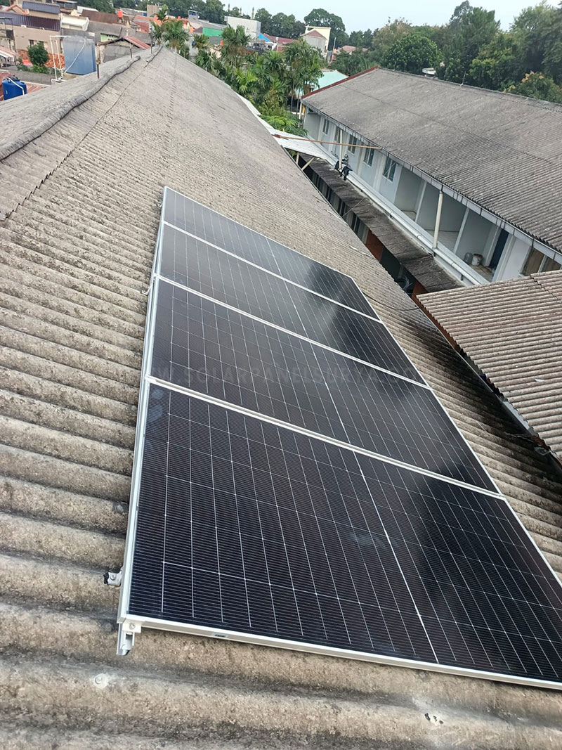 Ya, pemasangan panel surya dilakukan menggunakan rangka khusus yang dirancang agar aman dan tidak merusak struktur atap bangunan.
