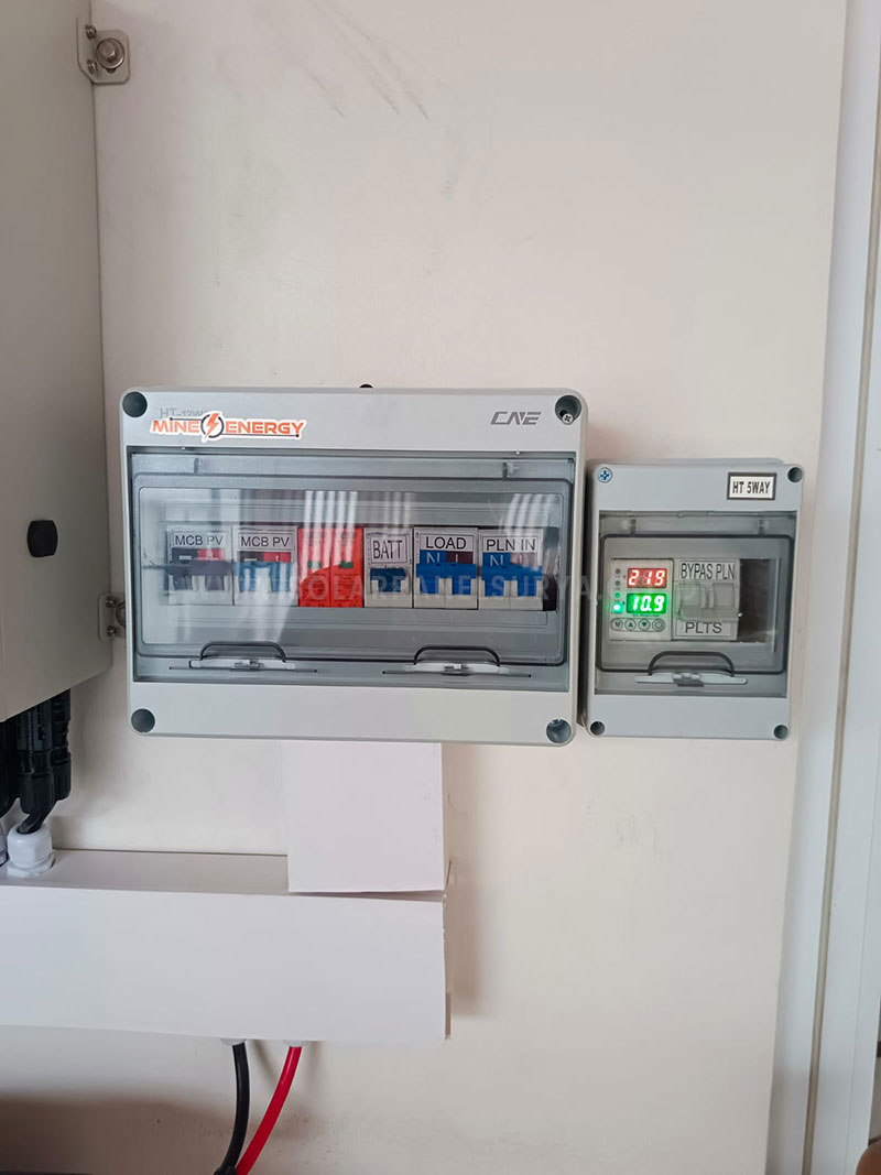 Panel surya hanya menghasilkan listrik saat ada sinar matahari. Untuk penggunaan malam hari, listrik dapat berasal dari baterai penyimpanan energi atau dari jaringan listrik PLN.